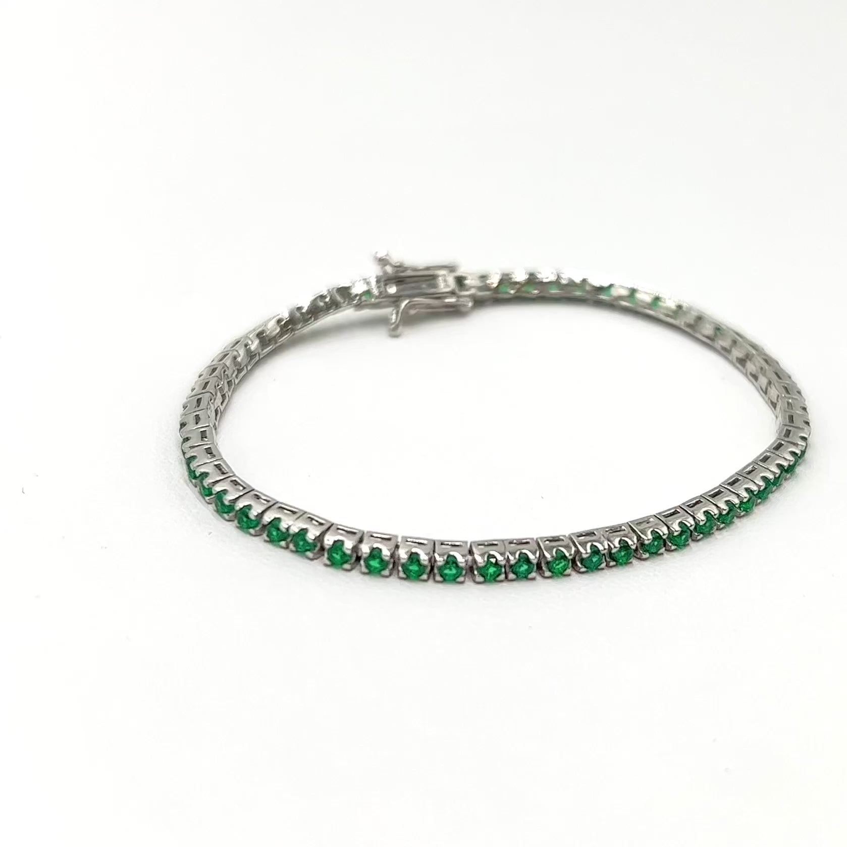 Tennis Green Look Silver Bracelet